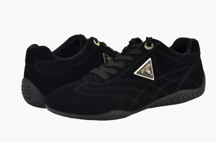 Elevate your everyday style with the Guess Women's Gabiey sneaker in classic black. Crafted for the modern woman who refuses to compromise between comfort and sophistication, this lace-up design features a distinctive gold emblem that adds a touch of luxury to your casual wardrobe. The sleek black silhouette pairs effortlessly with any outfit, making it an essential staple for work, weekend outings, or laid-back adventures. Experience the perfect blend of timeless elegance and contemporary comfort.